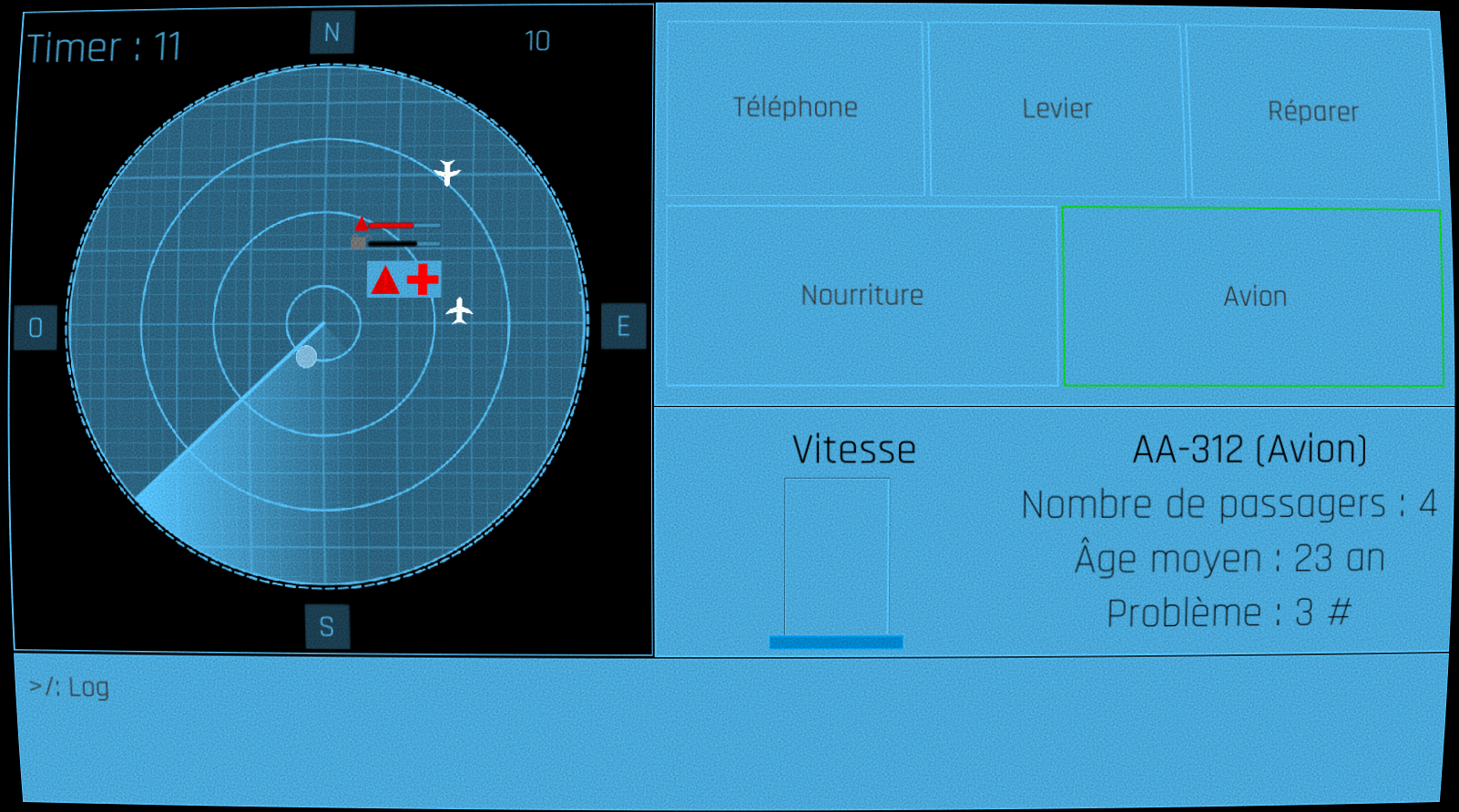 The player who manages the flights must ensure that all the planes arrive at the airport. However, sometimes there are situations that make planes out of control. To solve the problem, the player must make a series of commands. But, for that he must speak to the other player, because this one sees the procedure of the commands to send.