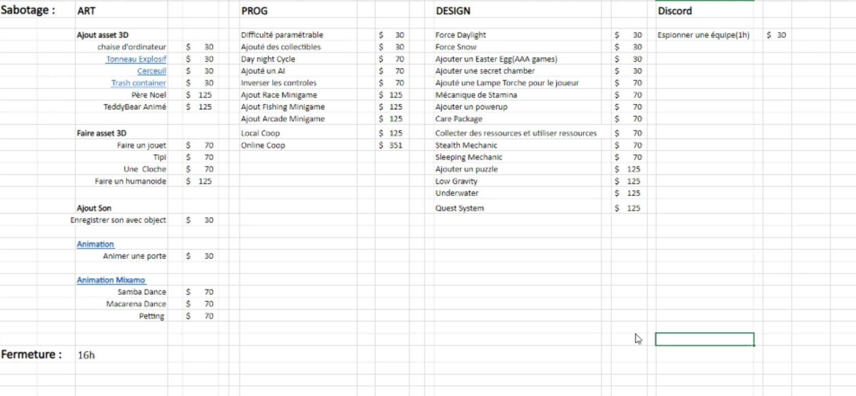 While we were creating a first-person horror game, we had to add to the game elements chosen by the other teams. We had to add :
